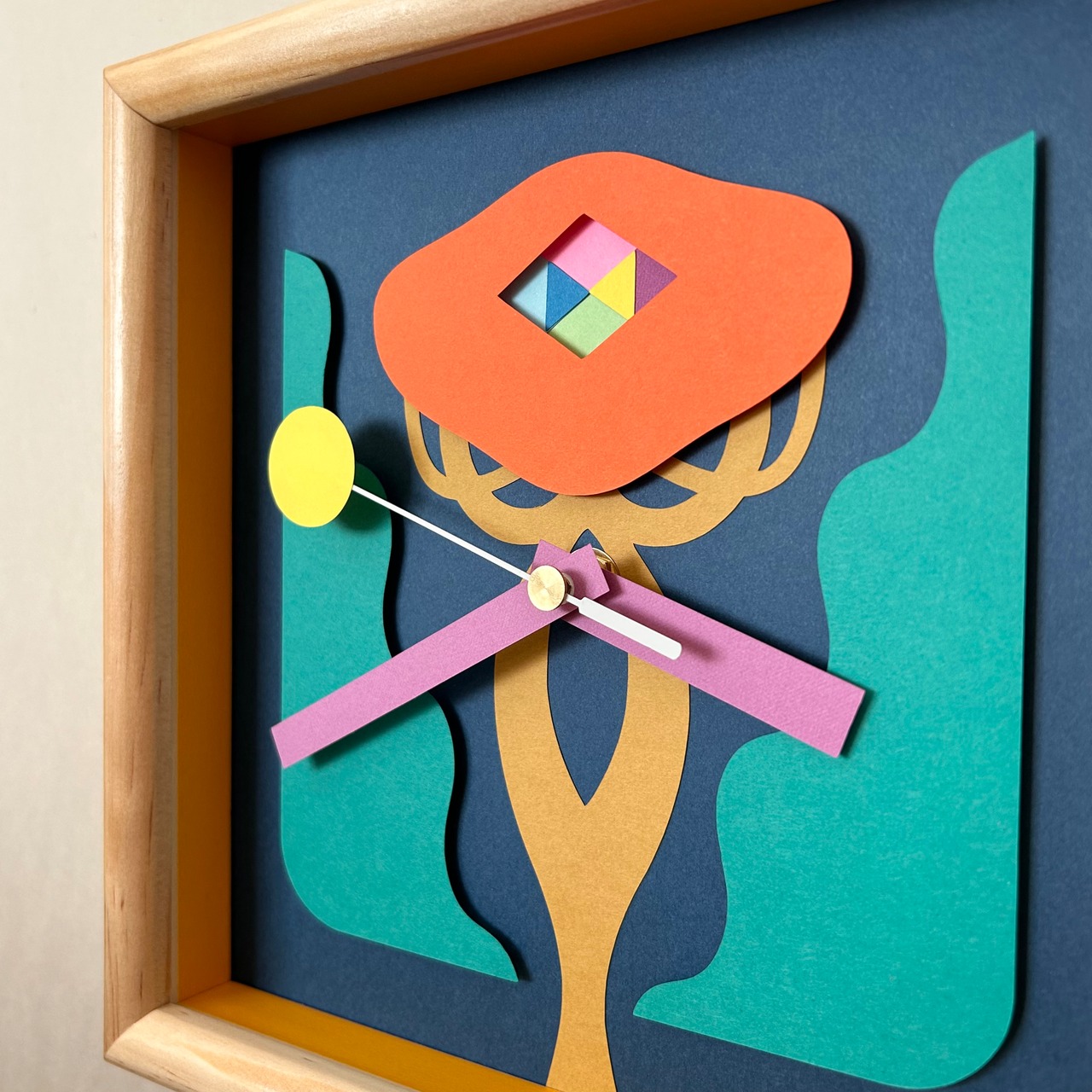 紙で装飾した掛け時計