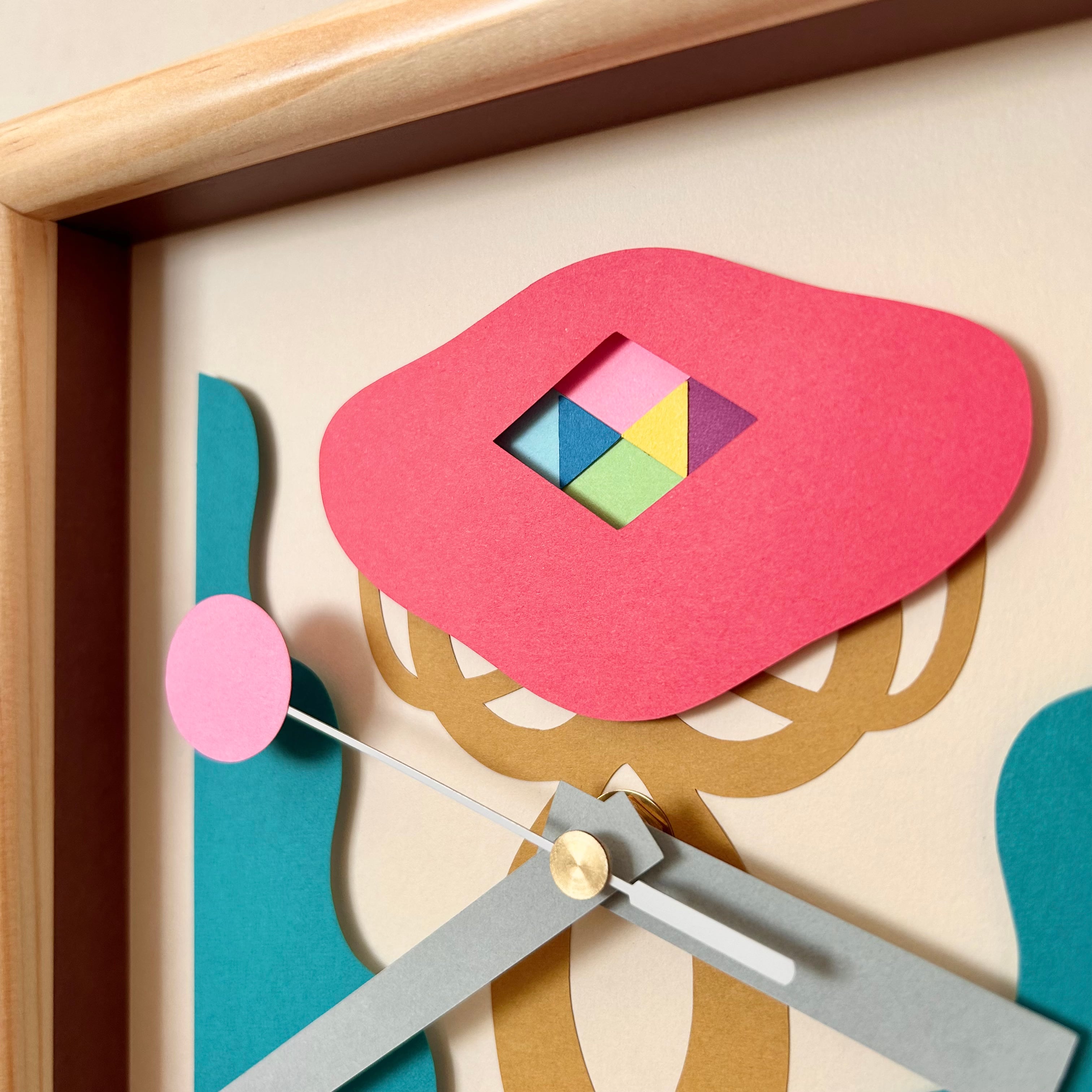 紙で装飾した掛け時計